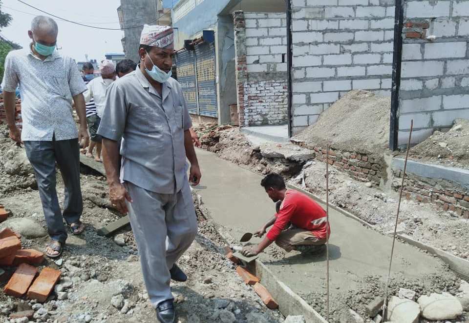 कोरोना संक्रमण रोक्न तथा यसको न्युनिकरणका लागि गरिएको लकडाउन र यसका लागि अपनाउनु पर्ने आवश्यक स्वास्थ्य सतर्कता संगै स्वास्थ्यकर्मी तथा प्राविधिकसहितको टोलीको निगरानी गरेर सुरक्षा बन्दोबस्ती भए नभएको यकिन गर्दै निर्माणका काम सुचारु गरिएको उपमहानगरपालिका प्रमुख शिवराज सुवेदीले बताउनुभयो । उहाँले निर्माणमा संलग्न निर्माण कम्पनी तथा उपभोक्ता समितिलाई मजदुरको स्वास्थ्य परीक्षण गर्न लगाइएको पनि बताउनुभयो ।