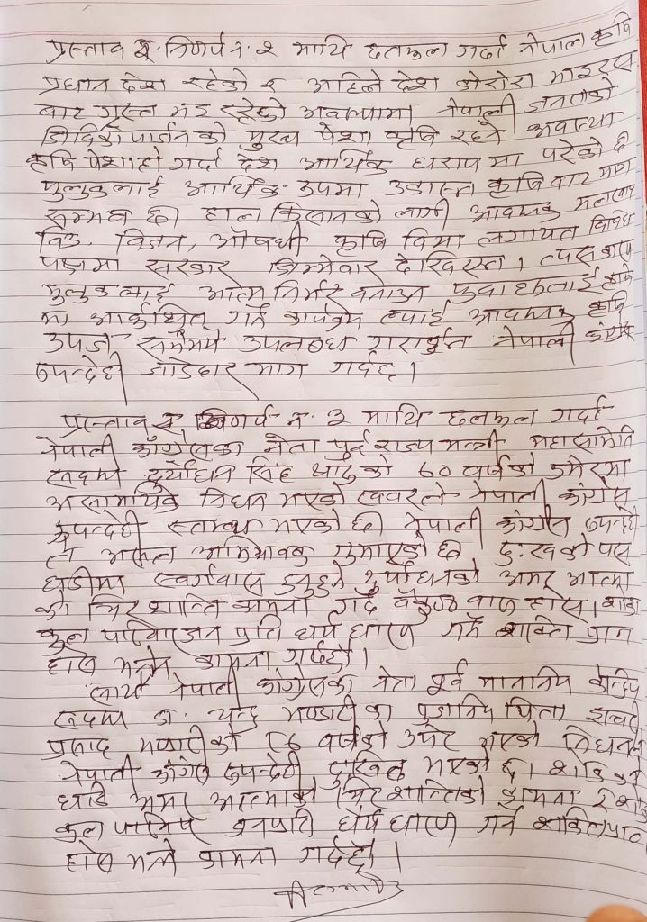 यसैगरि नेपाली काँग्रेसका नेता तथा पूर्व राज्यमन्त्री दुर्योधन सिंह चौधरी र नेपाली कांग्रेसका केन्द्रिय सदस्य डा. चन्द्र भण्डारीका बुवा ईश्वरी प्रसाद भण्डारीको निधन प्रति दुःख ब्यक्त गर्दै शोक प्रस्ताव पारित गरेको छ ।