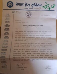 नेपाल प्रेस युनियन रुपन्देहीका सभापति रेखा भुसाल र सचिब श्यामशंकर पाण्डेद्धारा हस्ताक्षरित ध्यानाकर्षण पत्रमा कुनैखालका पुर्वाग्रह नराखि महासंघको बिधान बमोजिम सदस्यता प्राप्त गर्न योग्य तथा सक्रिय पत्रकारहरुलाई निष्पक्ष रुपमा सदस्यता सिफारिस गर्न माग गर्दै सुन्नमा आए जस्तो योग्य आवेदनकर्तालाई समेत सदस्यताका लागि सिफारिस नगरिए सक्रिय पत्रकारहरुको सदस्यता प्राप्तिका लागि युनियन संघर्ष गर्न पछि नपर्ने चेतावनी दिइएको छ ।