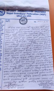निजी तथा संस्थागत विद्यालयले नियम विपरित चर्काे शुल्क लिएको र त्यसलाई सच्चाउन पनि महासंघले माग गरेको छ । निजि विद्यालयले उक्त निर्णयलाई नसच्चाए आन्दोलनका कार्यक्रम गर्न बाध्य हुने महासंघले चेतावनी दिएको छ । नयाँ शैक्षिक सत्रसंगै आवश्यक पर्ने पाठ्यपुस्तकहरु सहज र सुलभ रुपमा विद्यार्थीले प्राप्त गर्ने वातावरण मिलाउन समेत महासंघले माग गरेको छ ।