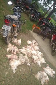यसैगरी ईलाका प्रहरी कार्यालय मझगावाबाट खटिएको प्रहरी टोलीले जिल्लाको कोटहिमाई गाउँपालिका वडा नं.५ दुईमुहानमा भारतबाट युपी ५५ आर ११८२ नम्बरको मोटरसाईकलमा राखेर नेपाल तर्फ ल्याउदै गरेको २८ वटा ब्रोईलर कुखुरा र मोटरसाईकल सहित अन्दाजी मूल्य रु. ५८ हजार बराबरको ब्रोईलर कुखुरा मोटरसाईकल सहित नियन्त्रणमा लिएको प्रहरीले जनाएको छ । यसरी बरामद गरिएको अबैध कुखुरा र मोटरसाईकल आवश्यक कारवाहीको लागि पशु सेवा क्वारेन्टाईन बेलहिया पठाईएको जिल्ला प्रहरी कार्यालय रुपन्देहीका प्रवक्ता प्रहरी नायव उपरीक्षक सत्यनारायण थापाले जानकारी गराउनु भयो ।