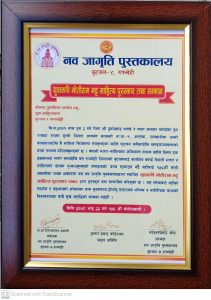 बुटवल, २२ भदौ । नव जागृति पुस्तकालय बुटवल रुपन्देहीले साहित्यकार पुरुषोत्तम पाण्डेयलाई नगद पुरस्कार सहित सम्मान गरेको छ । युवाकवि मोतिराम भट्टको १५६ औँ जन्मजयन्तीको अवसरमा पुस्तकालयले एक कार्यक्रमको आयोजना गरी युवाकवि मोतीराम भट्ट साहित्य पुरस्कार–२०७८ द्वारा साहित्यकार पाण्डेयलाई रु. पाँच हजार पाँच नगदसहित सम्मान गरेको हो ।