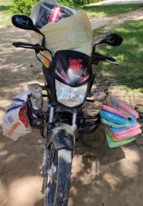प्रहरीले बरामद गरेका अबैध सामान र मोटरसाइकल :