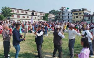 नवदुर्गा मन्दिर परिसरमा दुर्गादेवीका हतियार स्वरुप भाला, खुकुरी,तरबार नचाएर शनिबार दिनभर प्रदर्शन गरिएको हो ।