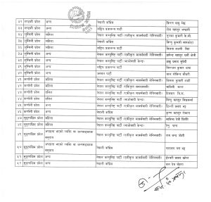 निर्वाचन कार्यक्रम अनुसार पुस २४ गते उम्मेदवारको विरोधमा उजुरी दिने, पुस २५ र २६ गते मनोनयनपत्र र उजुरी उपर जाँचबुझ गरी नामावली प्रकाशित गर्ने कार्यतालिका रहेको छ । यस्तै पुस २७ गते उम्मेदवारले नाम फिर्ता लिने तथा अन्तिम नामावली प्रकाशन गर्ने र पुस २८ गते उम्मेदवारलाई निर्वाचन चिन्ह वितरण हुने आयोगले जानकारी गराएको छ ।