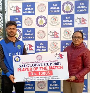 रुपन्देही क्रिकेट संघको आयोजना र साई ग्लोबल कलेजको मुख्य प्रायोजनामा प्रतियोगिता भइरहेको हो । प्रतियोगिताको विजेता टिमले ५५ हजार, उपविजेताले २५ हजार ५ सय ५५ रुपैयाँसहित ट्रफी, मेडल र प्रमाणपत्र प्राप्त गर्नेछन् । यस्तै, प्रत्येक खेलको प्लेयर अफ द म्याचलाई १ हजारसहित प्रमाणपत्र, प्लेयर अफ द सिरिजलाई १० हजारसहित ट्रफी र प्रमाणपत्र प्रदान गरिनेछ । यस्तै, बेस्ट बलर र बेस्ट बलरलाई जनही ५ हजारसहित ट्रफी र प्रमाणपत्र तथा अनुशासित टीमलाई ट्रफी र प्रमाणपत्र प्रदान गरिने खेल संयोजक उदयकुमार मल्लिकले जानकारी दिए ।