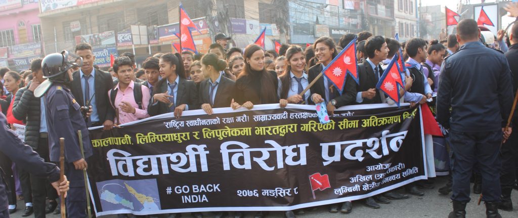 नेपाली सीमा मिचिएको विरोधमा विद्यार्थीहरुको प्रदर्शन