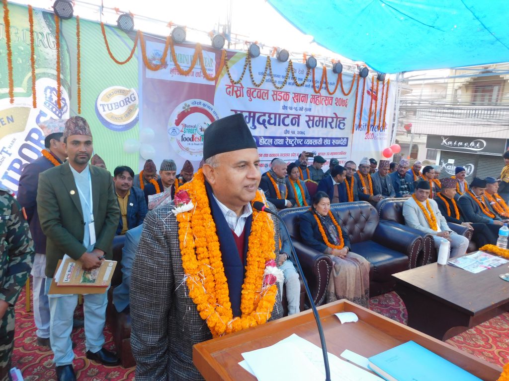 सडक खाना महोत्सवको एक विशेष समारोहका बीच प्रदेश नं ५ का मुख्यमन्त्री शंकर पोखरेलले उदघाटन गदै नेपालमा खाना संस्कृतिको विकास जरुरी रहेको बताउनु भयो । उहाले बुटवलको खाना महोत्सववाट हप्तामा एक दिन सपरिवार घरवाहिर गएर खाना खाने परिपार्टीको विकास गर्न जरुरी रहेको छ भन्दै त्यो गर्न सकेमा मात्र पर्यटनको विकास हुने र पर्यटन क्षेत्रमा लगानी बढने धारणा राख्नु भयो ।ं