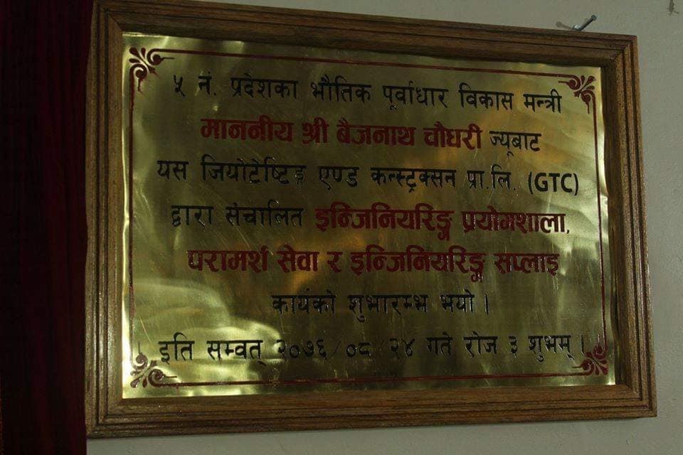 प्रयोगशालाको प्रदेश नं. ५ का भौतिक पूर्वाधार विकास मन्त्री बैजनाथ चौधरीले एक बिशेष कार्यक्रमविच शुभारम्भ गर्नु भएको हो । सो अवसरमा बोल्दै मन्त्री चौधरीले गुणस्तरिय निर्माणमा यस प्रयोगशालाले महत्वपूर्ण योगदान पुर्याउने अपेक्षा सहित यसलाई नतिजा र परिणाममुखि बनाउन आग्रह गर्नुभयो ।